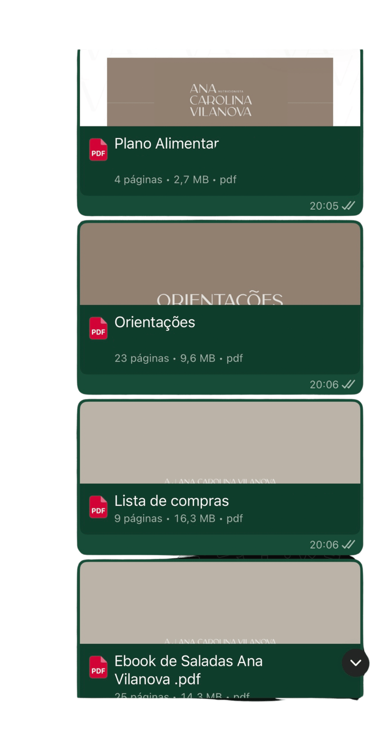 Suporte na Palma da Mão: Plano alimentar e contato direto via WhatsApp e acesso ao Diet Box para ajustes em tempo real.